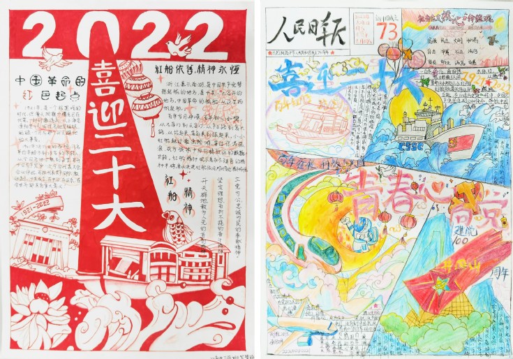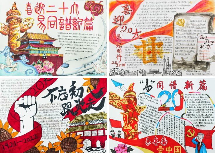 大江流日夜,慷慨歌未央,历史长河滚滚向前,时代号角催人奋进。为了引导学生不断增强民族自尊心、自信心和自豪感,唱响爱党、爱国、爱社会主义的时代主旋律,机电学院举办了“易”同谱新篇——手抄报设计大赛。机电学子积极响应,将学习党的二十大报告的心得体会,借助手中的画笔绘制成了一幅幅版面精美、内容丰富、布局新颖、书写清晰的手抄报作品。庄严神圣的党旗,鲜艳的五星红旗,飞跃的高铁桥梁,林立的高楼大厦,浩渺的海底隧道……学生们用心绘画,以笔传情,抒发爱党爱国的真挚情感。