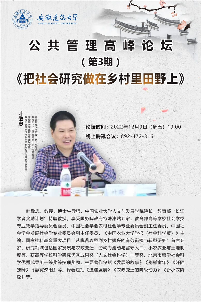 2022年第32场学术报告:公共管理高峰论坛(第3期)《把社会研究做在乡村田野上》