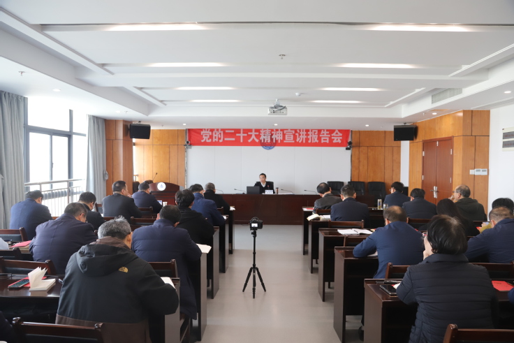 孙道胜作了题为《深入学习贯彻党的二十大精神,奋力谱写学校事业高质量发展新篇章》的党的二十大精神宣讲报告。孙道胜从深刻领会党的二十大的重大意义、准确把握党的二十大精神实质、迅速掀起学习宣传贯彻党的二十大精神的热潮、衷心拥护“两个确立”忠诚践行“两个维护”、奋力推动学校各项事业高质量发展等方面对党的二十大精神作了全面宣讲和详细解读。孙道胜强调,学习贯彻党的二十大精神最根本、最重要就是要坚决捍卫“两个确立”,“两个确立”反映了全党全军全国各族人民的共同心愿,对新时代党和国家事业发展、对推进中华民族伟大复兴历史进程具有决定性意义。要增强“四个意识”、坚定“四个自信”、做到“两个维护”,不断提高政治判断力、政治领悟力、政治执行力,在思想上、政治上、行动上同以习近平同志为核心的党中央保持高度一致。要坚持学用贯通,把学习成效转化为推动工作的强大动力,转化为创新突破的思路举措,转化为履职尽责的素质本领,推动党的二十大精神在学校落地生根、开花结果。要增强政治担当,牢记为党育人、为国育才初心使命,坚守立德树人根本任务,坚定不移实施人才强校、创新驱动战略,积极服务科教兴国战略和区域经济社会发展,努力推动学校各项事业发展上更高台阶,为中华民族伟大复兴作出积极贡献。