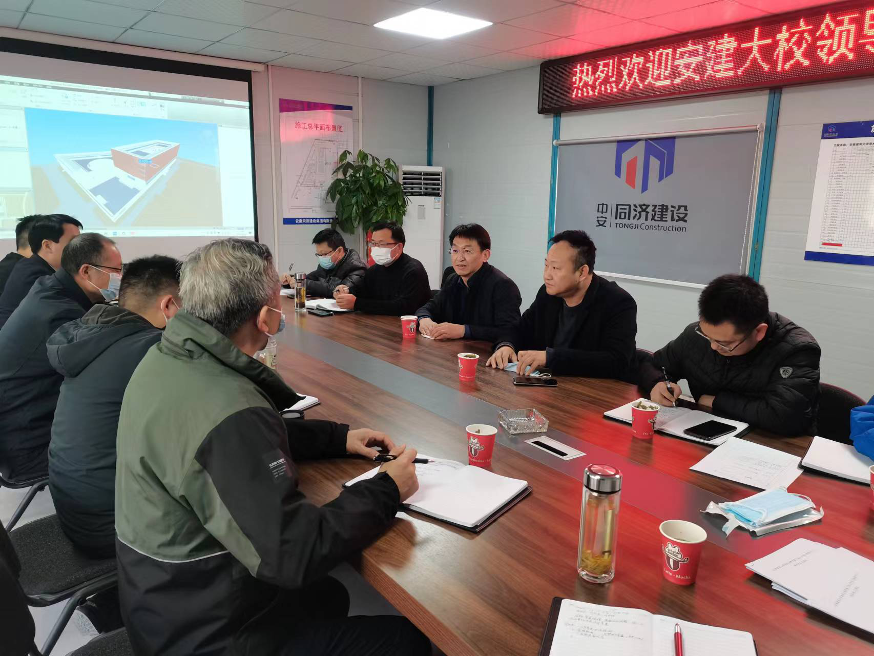 本网讯 12月13日下午,施工总承包单位在南校区教学楼(国土空间大数据中心)项目部会议室组织召开建筑信息模型(BIM)专题汇报会议。校党委常委、副校长张亚新,国资处负责人、施工单位、设计单位、监理单位、项目管理公司代表等相关人员参加会议。