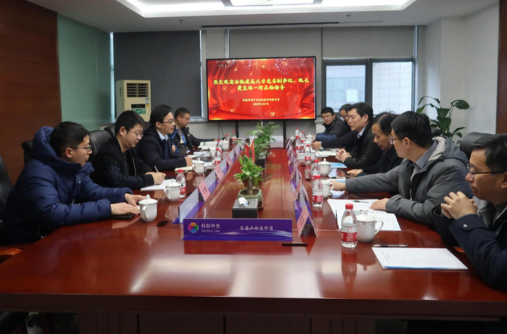 本网讯 2月7日下午,校党委副书记、校长黄显怀率队赴安徽科创中光科技股份有限公司开展校企合作调研交流。学校科技处、实验室与设备管理处、环能学院和数理学院相关人员陪同参加调研。安徽科创中光科技股份有限公司董事长汪思保、总工程师曹开法热情接待了黄显怀一行。