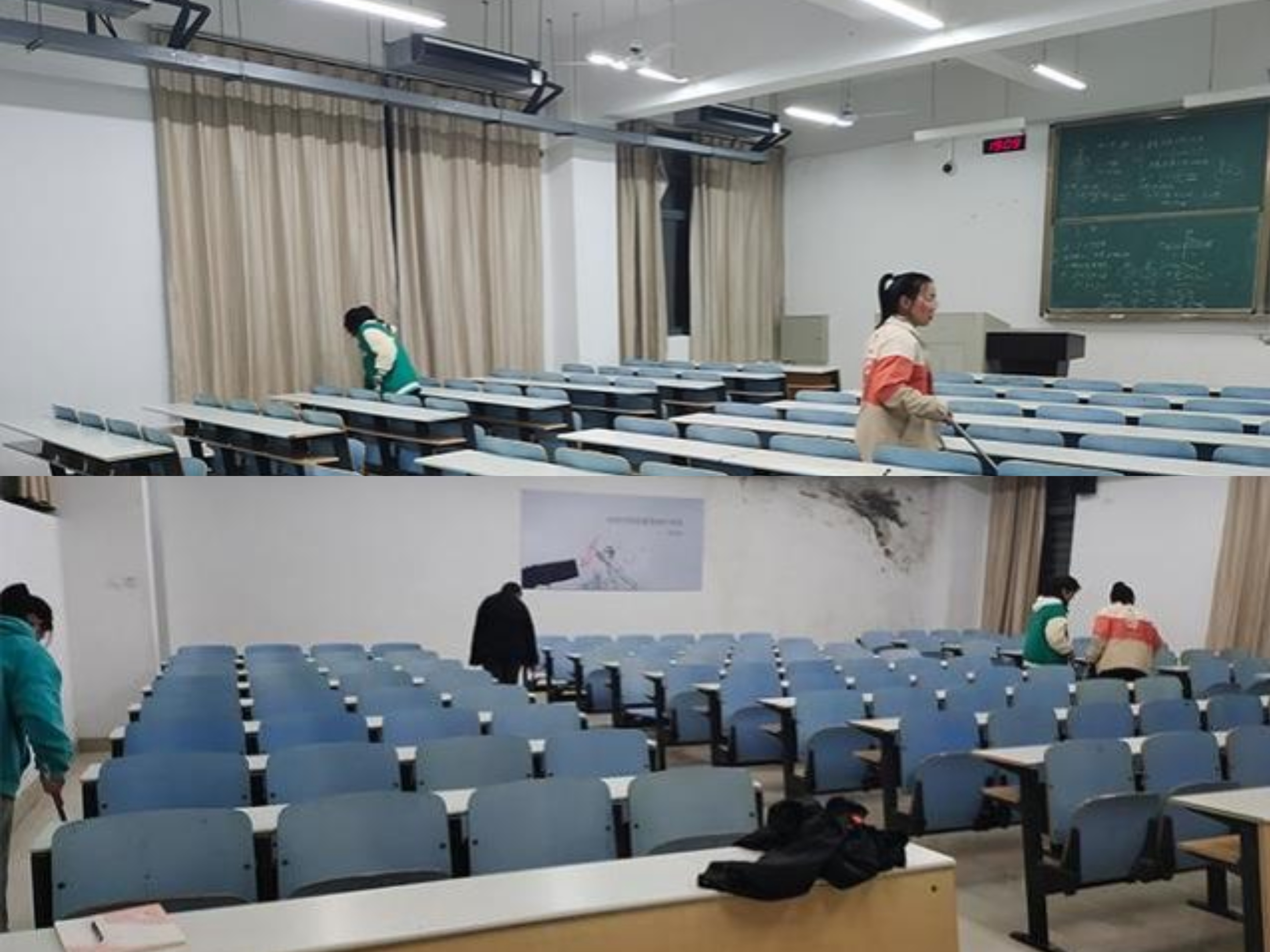 为了营造出更加美丽的校园环境,学生们纷纷加入了清洁校园环境的活动中来,由各班级团支部所带领的清洁小分队先后清理了校园道路上和教室里的垃圾。学生们充分发扬了不怕苦不怕累的劳动精神, 为我们美丽的校园除去了污垢,让教室重新焕发光彩!