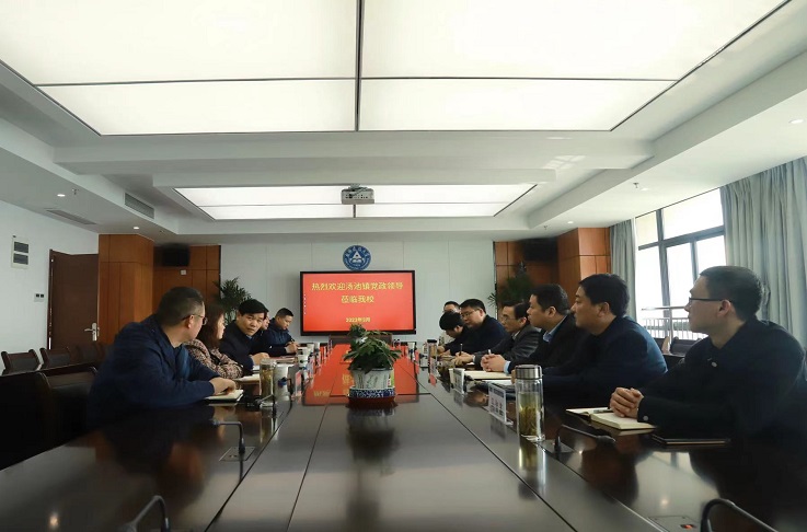 本网讯 3月3日上午,汤池镇党委书记余先进、汤池镇镇长黄直率队来访我校。学校党委书记孙道胜接见余先进一行,办公室、教务处、团委、后勤集团等主要负责人参加会谈。