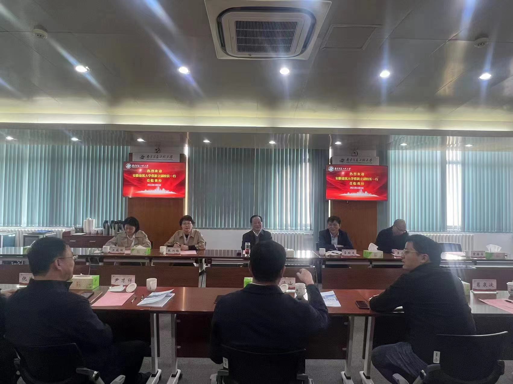 本网讯 为更好推动学校与南京信息工程大学共建长三角区域高等教育一体化示范区战略合作,近日,校党委常委、副校长蔡新立带队赴南京信息工程大学考察交流,深入调研国家级项目申报和科研平台建设先进经验,科技处、电信学院、机电学院、公管学院、经管学院等部门负责人参加调研。南京信息工程大学校党委常委、副校长陈海山热情接待了我校考察团一行。
