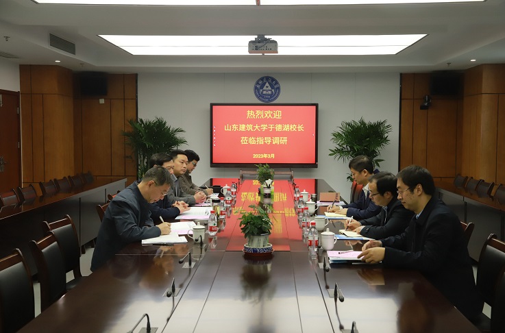 本网讯 3月21日,山东建筑大学党委副书记、校长于德湖一行4人来校调研交流,学校在南校区实验综合楼21楼第二会议室召开座谈会,校党委副书记、校长黄显怀及相关单位主要负责同志参加会议。