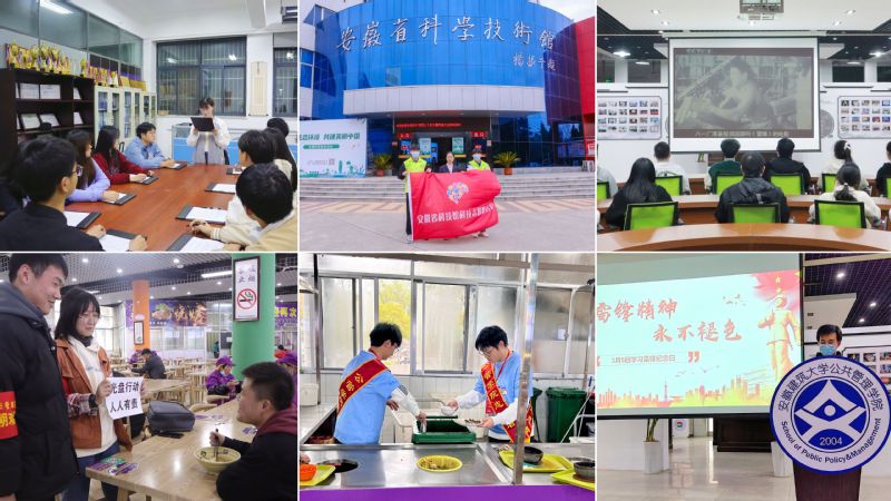 据悉,公管学院开展“三月春风暖人心,雷锋精神永传承”主题活动:观看电影《雷锋,爱笑的人》、“学习雷锋精神,争做时代新人”故事宣讲、赴安徽省科技馆从事志愿服务活动、校园“勤俭节约光盘行动”文明倡议活动等,以学雷锋月为契机,全面落实高校立德树人的根本任务,引领“00后”以理想与担当续写雷锋日记,以踔厉奋发、笃行不怠的青春姿态向祖国实现第二个百年奋斗目标奋勇前进。(作者:牛勤;审稿:马晓艳)