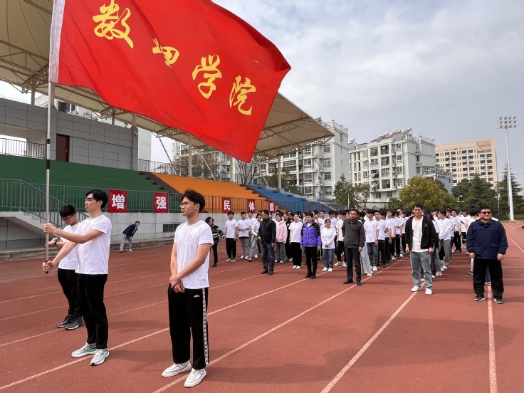 本网讯 为深入学习宣传贯彻党的二十大精神,“五育”并举促进学生全面发展,3月29日,数理学院第九届“Ω”科技文化节在南校区风雨操场隆重开幕。本次科技文化节以彩虹跑的形式开幕旨在响应国家全民运动的号召,丰富学生校园体育文化生活。校党委常委、纪委书记、监察专员王玉兰,学院党政领导班子成员、辅导员及学生代表近两百人参加活动。