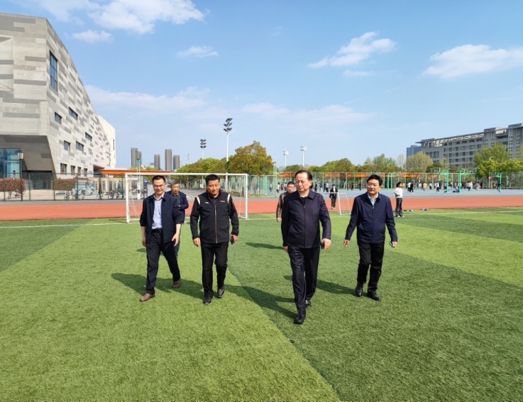 在足球场,蔡新立带领后勤集团和体育部实地查看了足球场具体的损坏情况并询问了解了损坏现状和对体育运动产生的不利影响,要求后勤集团联合体育部尽快做出应急维修和彻底改造方案,提供完善优质的体育运动设施,确保师生运动安全。