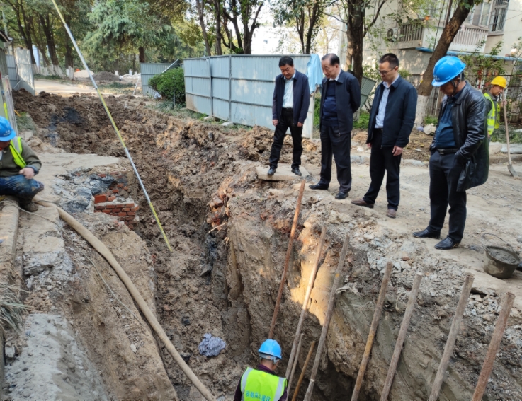 在北校区雨污分流项目施工现场,蔡新立实地查看指导北校区雨污分流最关键的施工点,现场指导施工单位要按照设计图纸规范施工,加快施工进度,保持施工现场文明有序,按时间节点保质保量完成各项施工任务。