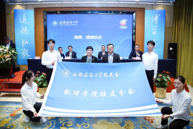 会上,王玉兰、胡燕青为数理学院校友分会揭牌,王玉兰为数理学院校友分会授旗。校友分会会长、副会长、秘书长等上台合影留念。