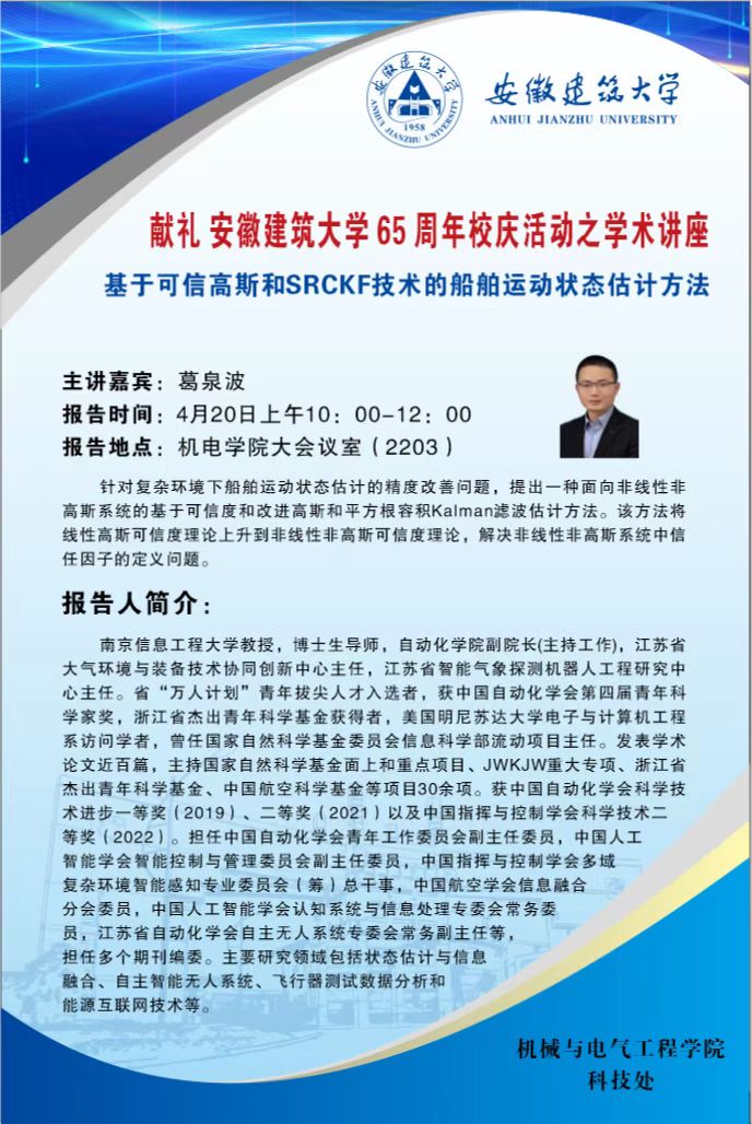 2023年第15场学术报告:科研与科技成果转化分论坛第二期——基于可信高斯和SRCKF技术的船舶运动状态估计方法