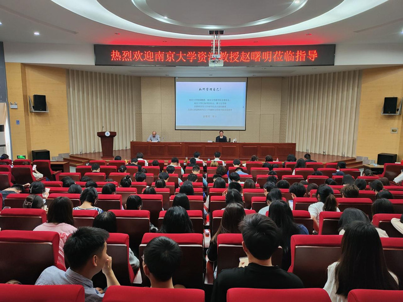 首先,赵曙明教授在北校区图书馆二楼报告厅为我校200多名师生做题为“如何管理自己”的学术报告会,公管学院院长黄佳豪主持会议。
