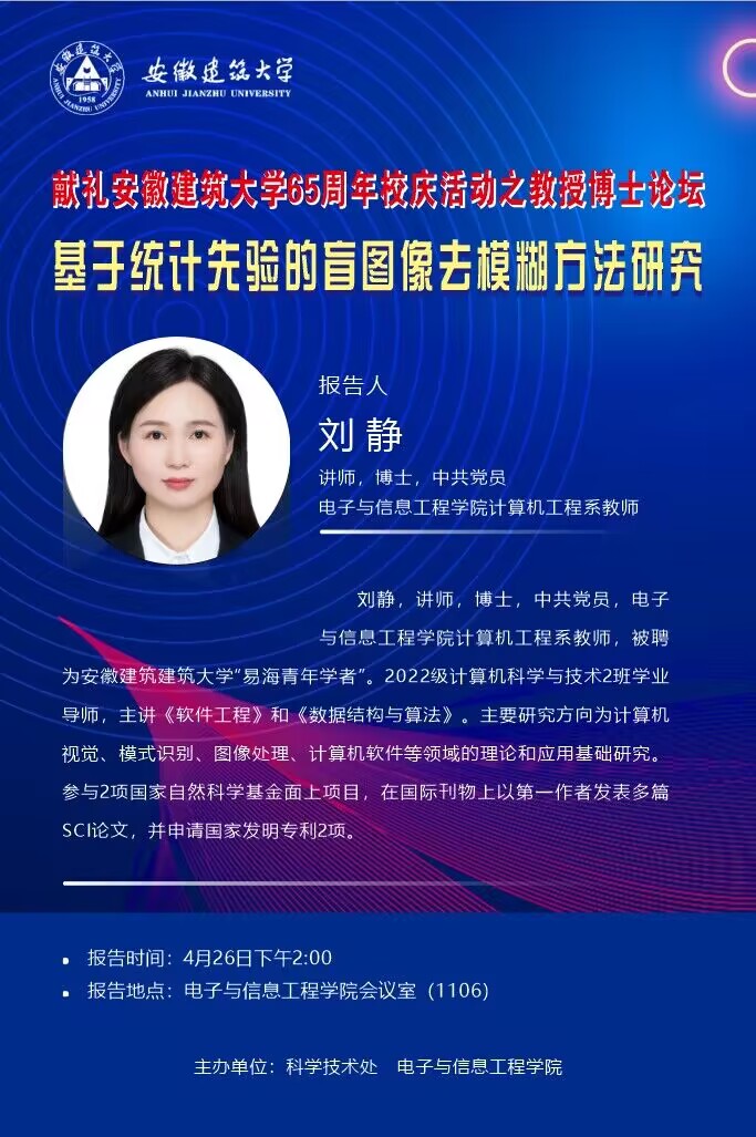 2023年第16场学术报告:科研与科技成果转化分论坛第三期——基于统计先验的盲图像去模糊方法研究