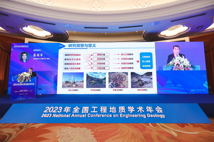 本网讯 4月21-23日,“2023年全国工程地质学术年会”在南京召开,本次大会由中国地质学会主办,中国地质学会工程地质专业委员会和南京大学共同承办,国家自然科学基金委员会、中国科学院地质与地球物理研究所等多家科研院所、高校和企事业单位支持协办。ku游官方党委常委、副校长蔡国军教授、土木工程学院执行院长张宁教授、安徽省智能地下探测技术研究院吴盾副教授等相关老师和研究生参加此次会议。