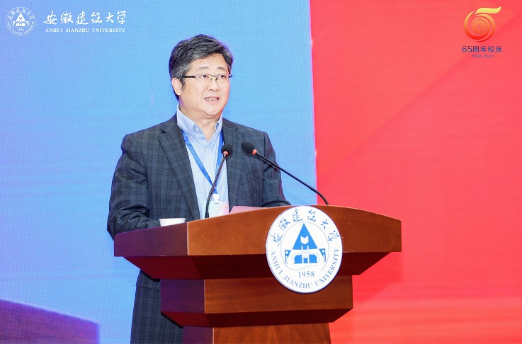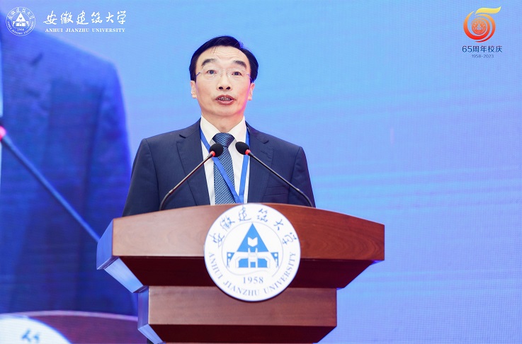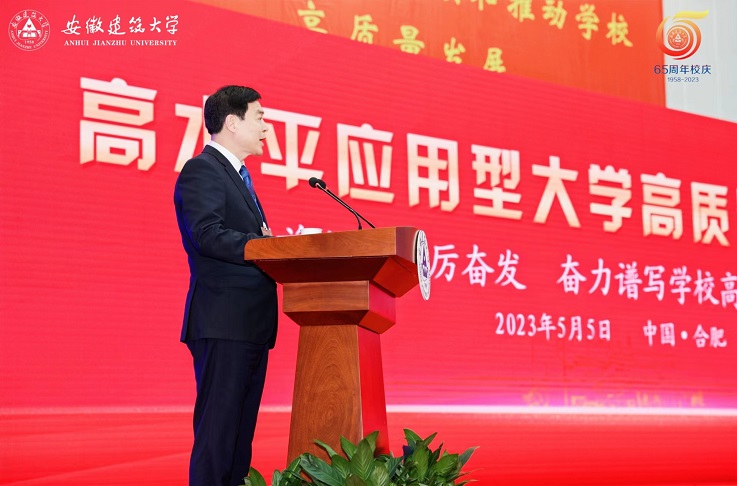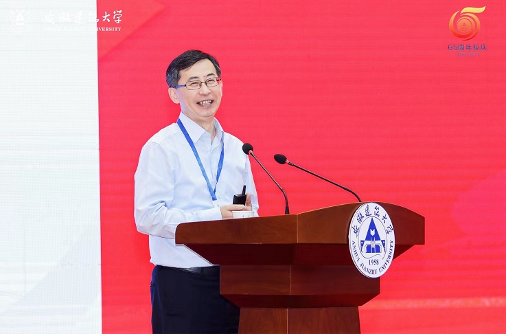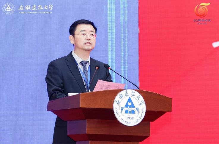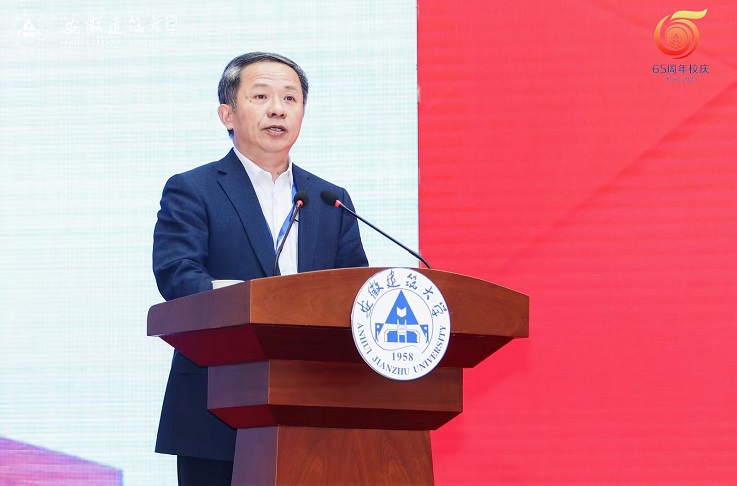 住房和城乡建设部总经济师杨保军发表讲话,充分肯定了学校65周年的办学成就,希望以办学65周年为新起点,以本次高水平应用型大学高质量发展论坛为新契机,加快国内一流、特色鲜明的高水平建筑大学建设步伐,为促进安徽省经济社会发展和国家城乡建筑事业发展贡献积极力量。