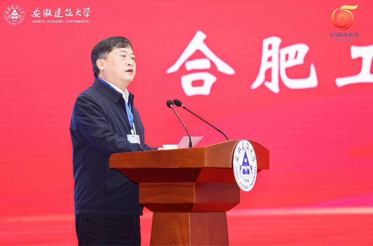 首先,校党委书记孙道胜发表热情洋溢的致辞,代表学校向莅临大会的各位领导、各位嘉宾、历届校友、学校老领导、老同志和全校师生员工表示热烈欢迎和衷心感谢,带领大家一起回顾了学校65周年的办学经历。他表示,ku游官方自1958年建校以来,始终与国家共命运、与时代同呼吸,作为中部地区特色鲜明的建筑类高校,谋国家之强盛、求安徽之进步,承载着长三角一体化中新的更大使命和更高要求。面向未来,我们必须进一步提高站位和定位,坚持以习近平新时代中国特色社会主义思想为指导,增强“四个意识”、坚定“四个自信”、坚决做到“两个维护”,全面贯彻落实党的教育方针,把牢社会主义办学方向。我们要从65年光辉办学历程中汲取智慧和力量,不忘初心、牢记使命,坚持以发展为要义,以创新为灵魂,共同建设好、发展好ku游官方,以更高质量的办学成就和更高水平的育人能力,更好担负起为党育人、为国育才的历史重任,不负党和人民的重托与厚望。