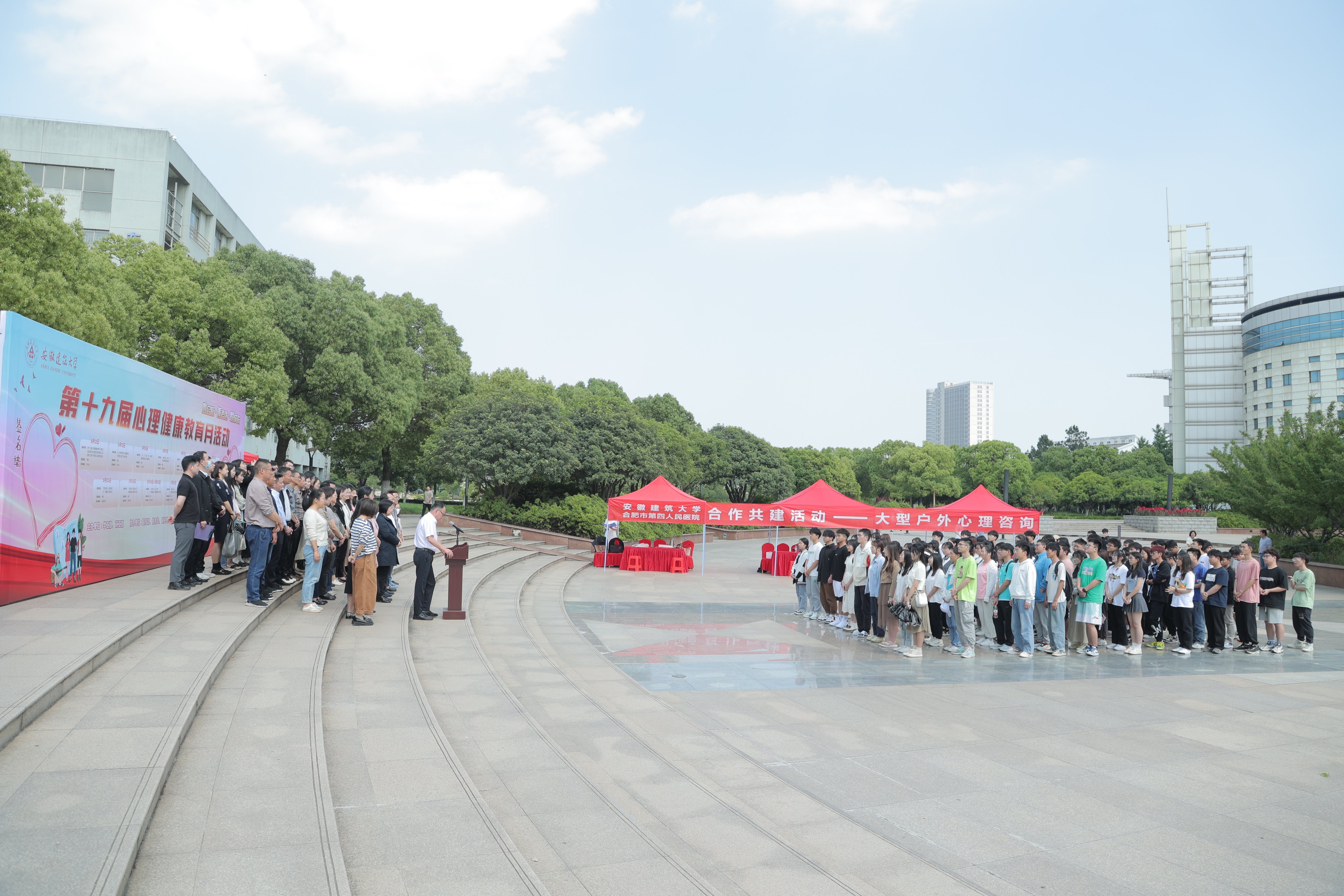 本网讯 为统筹全校各部门力量,借助专业医疗资源,构建全校大学工平台,进一步加强和推进学校心理健康教育工作,不断探索以学生为中心的心理健康普及,宣传和教育的新形式、新方法,5月12日,学校举办了第十九届心理健康教育月启动仪式暨合肥市第四人民医院大型广场现场咨询活动。校党委常委、副校长李早教授出席开幕式并致辞。中国科学技术大学、安徽医科大学、合肥市第四人民医院、合肥师范学院和合肥幼儿师范高等专科学校9名心理健康教育专家,学校学生事务联席会议成员单位负责人、各学院分管学生工作副书记、心理辅导站老师、学工部(学生处)全体工作人员和学生代表参加了活动。启动仪式由党委学工部负责人主持。