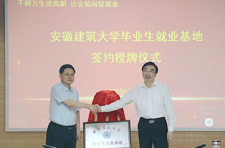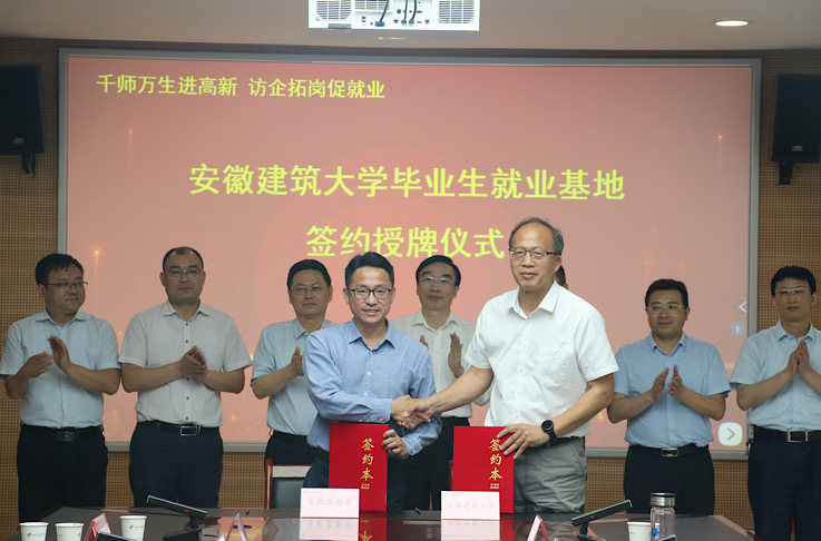 校就业工作处和高新区组织人事局负责人共同签订了《毕业生就业基地建设协议》并进行“安徽建筑大学毕业生就业基地”授牌。
