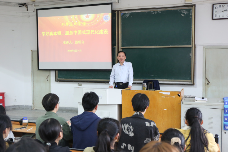 蔡新立以《学好真本领,服务中国式现代化建设》为题,深入浅出地阐述了中国式现代化的基本内涵、突出特点和战略安排,并立足当前国内外形势,通过鲜明的案例和热情的互动,勉励大学生练就过硬本领,将来用真才实学服务于中国式现代化建设。本次课程内涵丰富,逻辑清晰,不仅让大家学习了中国式现代化的科学理论,了解了当前的形势,更让大家意识到自身肩负的中华民族伟大复兴的责任。