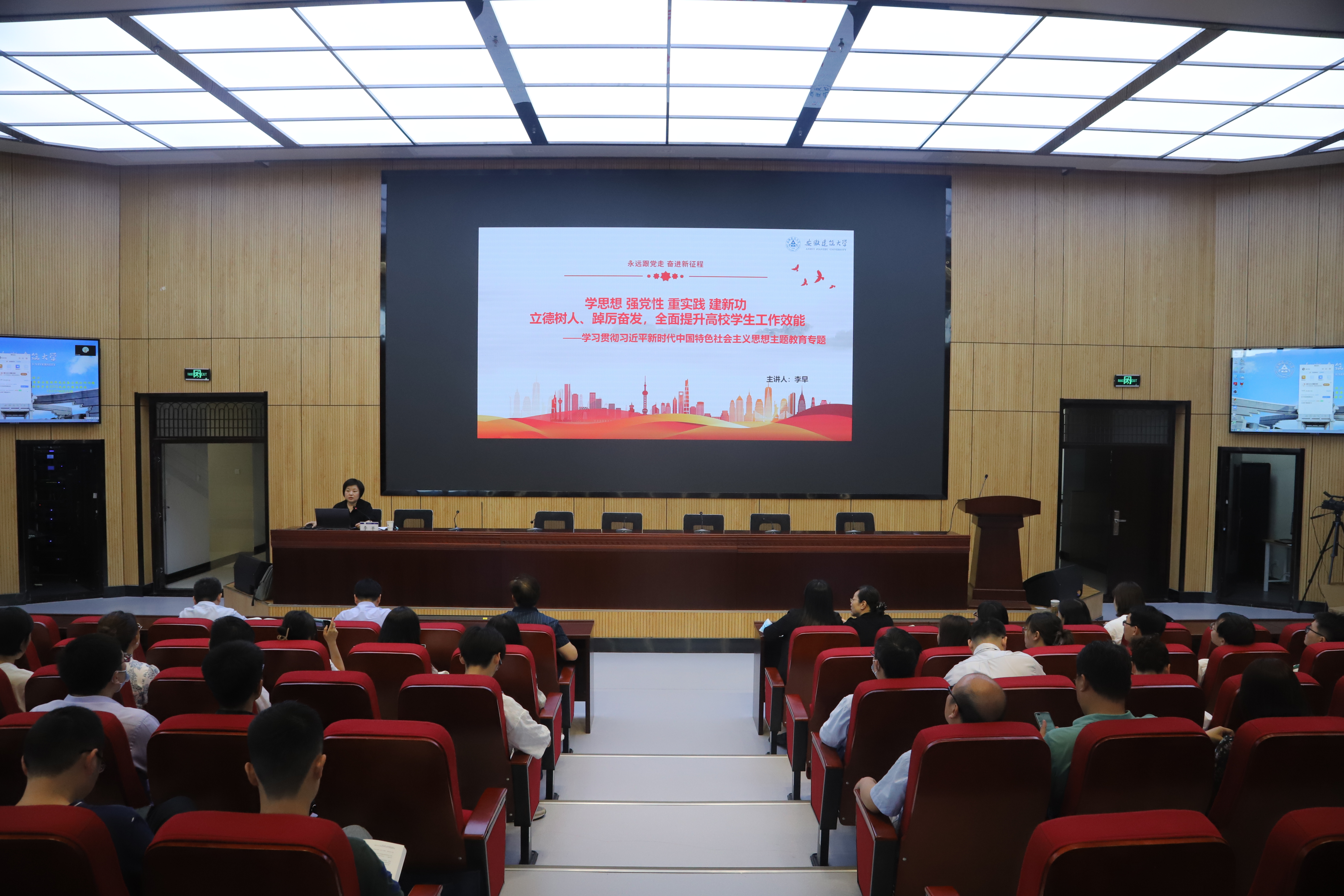 为深入推进学习贯彻习近平新时代中国特色社会主义思想主题教育走深走实,按照学校党委主题教育工作安排,5月25日上午,校党委常委、副校长李早在实训综合楼二楼报告厅以《立德树人、踔厉奋发,全面提升高校学生工作效能》为题,讲授主题教育专题党课。校宣传部、统战部、学生处、研工部、工会、团委、建规学院、艺术学院相关负责人,教师党员代表,学生党员代表参会。
