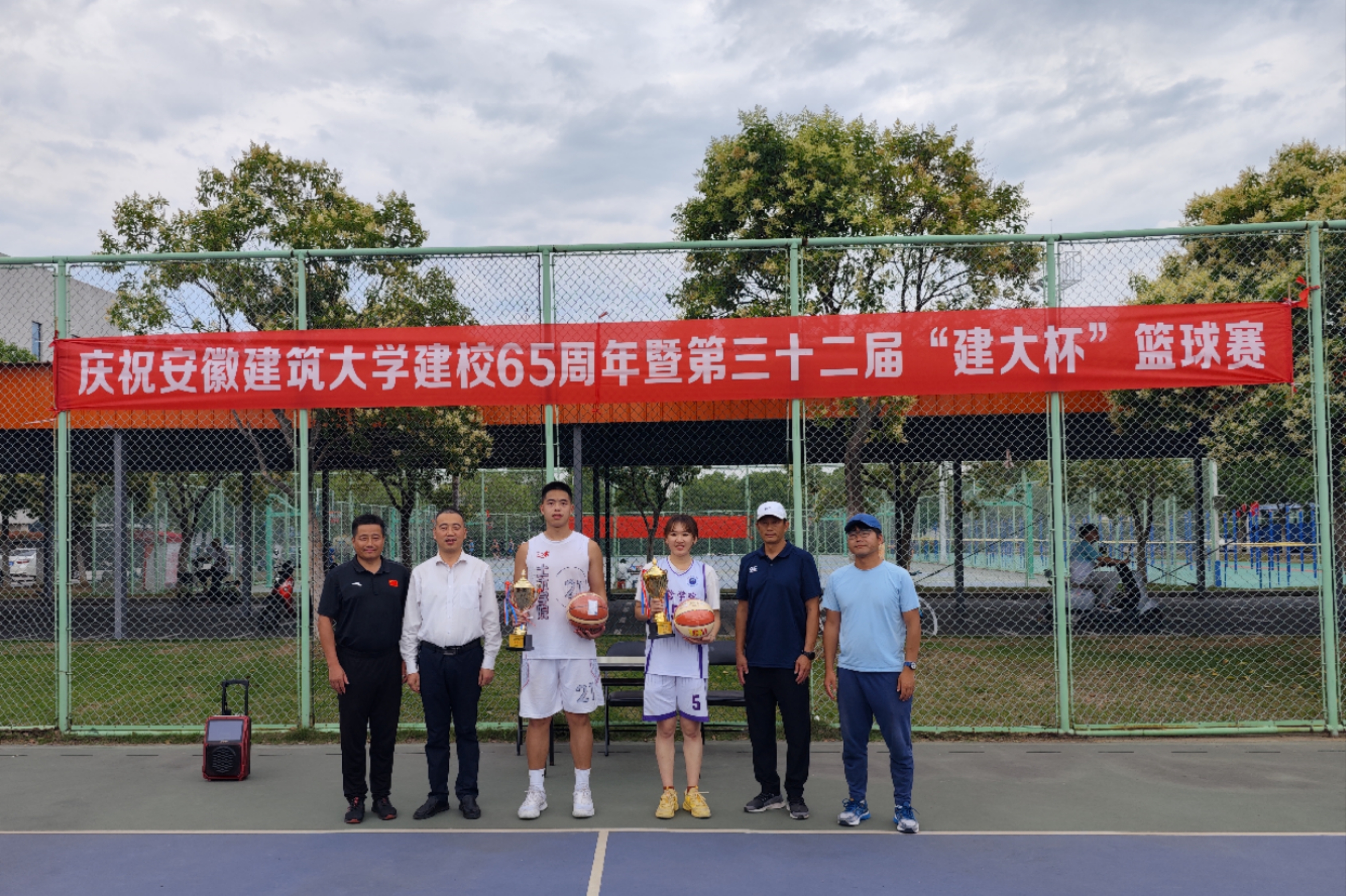 本网讯 6月7日,庆祝建校65周年第三十二届“建大杯”篮球赛暨篮球俱乐部第四届篮球赛随着裁判员一声清脆的终场哨声在南校区篮球场圆满落幕。本届比赛共有19支学院代表队,300余名教练员运动员参赛。校党委常委、副校长闵杰出席闭幕式并为获奖球队颁奖。