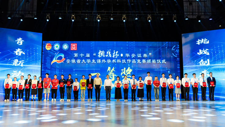 本网讯 近日,2023年安徽省第十届“挑战杯”课外学术科技作品竞赛最终获奖名单公布。我校斩获一等奖4项、二等奖4项、三等奖6项的好成绩,荣获“优秀组织奖”,3项作品晋级国赛,取得历史性突破!