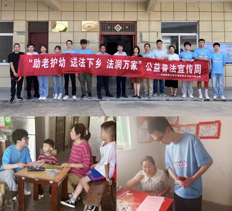“助老护幼、送法下乡、法润万家”公益普法宣传。大学生在当地居民的指引下走访农户进行公益普法。他们向村民们讲解《中华人民共和国宪法》《中华人民共和国环境保护法》《中华人民共和国义务教育法》《中华人民共和国婚姻法》《中华人民共和国未成年人保护法》等常用法律知识,并提醒大家在生活中自觉守法、遇事找法、办事依法、解决问题用法、化解矛盾靠法,让法治阳光照亮乡村的美好生活。
