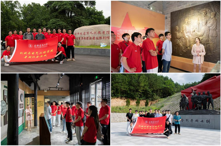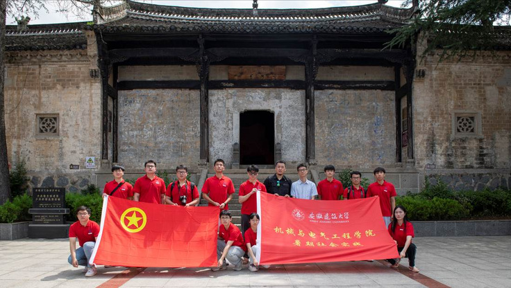本网讯 奋斗是青春最亮丽的底色,行动是青年最有效的磨砺,有责任有担当,青春才会闪光。为深入开展学习贯彻习近平新时代中国特色社会主义思想主题教育,将大学生思政教育与专业教育、劳动教育有机结合,涵养青年学生家国情怀,推动乡村振兴取得新进展。7月6日至9日,机电学院党委副书记何鹤立带领暑期社会实践团队师生一行17人以“设计下乡赋能乡村振兴,传承薪火探寻红色足迹”为主题赴淮南、金寨开展暑期社会实践活动。