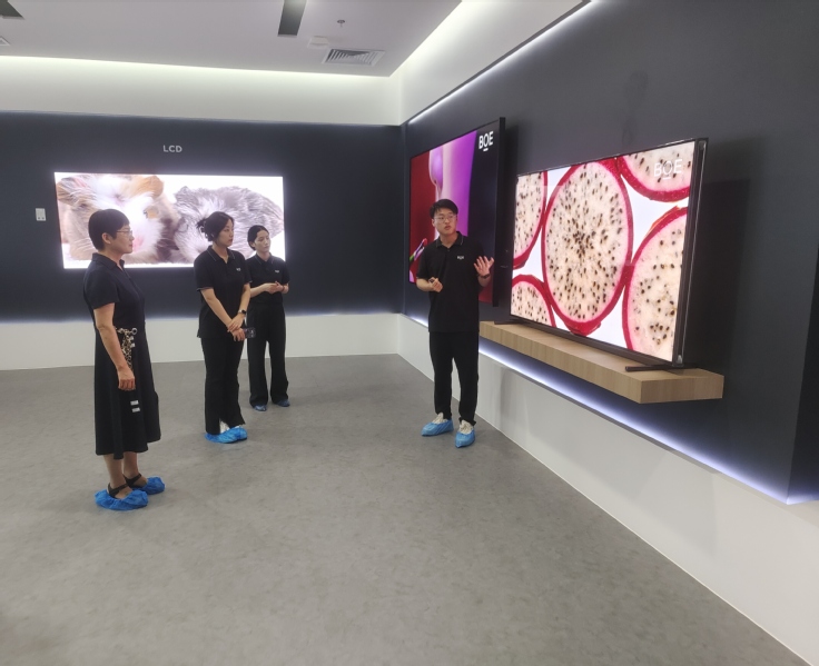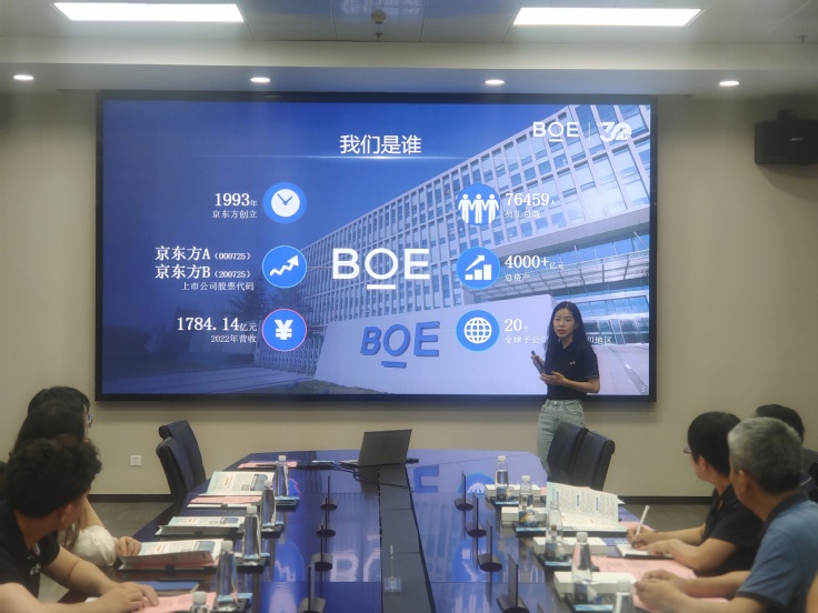 京东方HRSSC中心全球校园招聘华东大区经理徐伟堂带领大家参观了京东方技术创新中心展厅,详细介绍了京东方的发展历程和产品研发等情况。