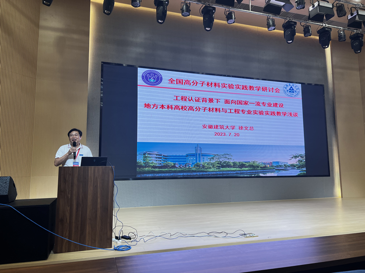 比赛结束后,组委会举办了“全国高分子材料实验实践教学研讨会”,我校徐文总教授应邀在大会作交流报告。