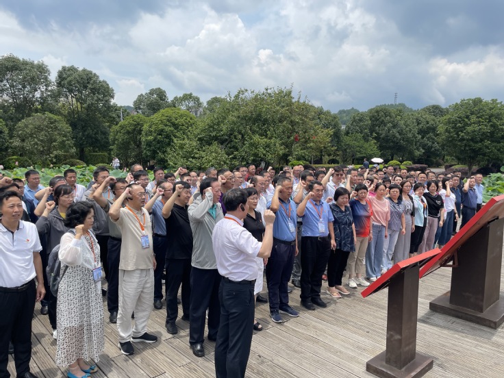 7月24日,研修班全体学员前往福建龙岩古田会议会址、毛主席纪念园、古田会议纪念馆等开展现场教学,加强革命传统教育,进一步提升学习培训的吸引力、感染力、向心力。“我志愿加入中国共产党,拥护党的纲领,遵守党的章程……”在古田会议会址前,全体学员重温入党誓词,不忘初心使命。