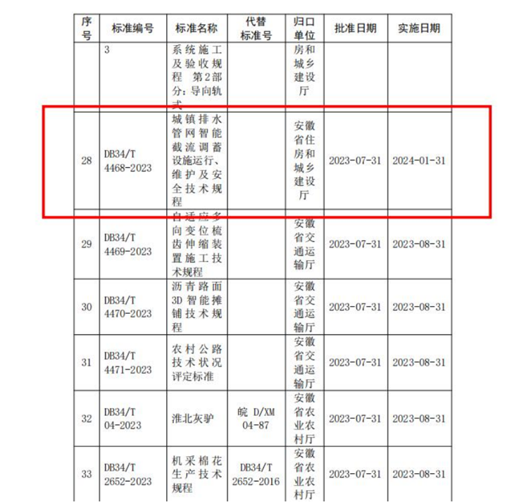 本网讯 7月31日,安徽省市场监督管理局发布第8号公告,由ku游官方作为第一主编单位的安徽省工程建设地方标准《城镇排水管网智能截流调蓄设施运行、维护及安全技术规程》获批准发布,标准编号DB34/T4468-2023,并将于2024年1月正式实施。