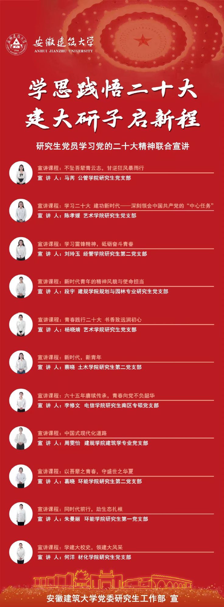 据悉,本次联合宣讲依托ku游官方研究生党支部微党课比赛,选取其中部分优秀课程参与。微党课比赛由党委研工部主办,研思工作坊具体承办,大赛累计收到16个研究生党支部的24个作品,计划培养和挖掘一批优秀研究生理论宣讲骨干,并在全校掀起青年宣讲理论的热潮。(作者:靳杰;审核:陈剑锐)
