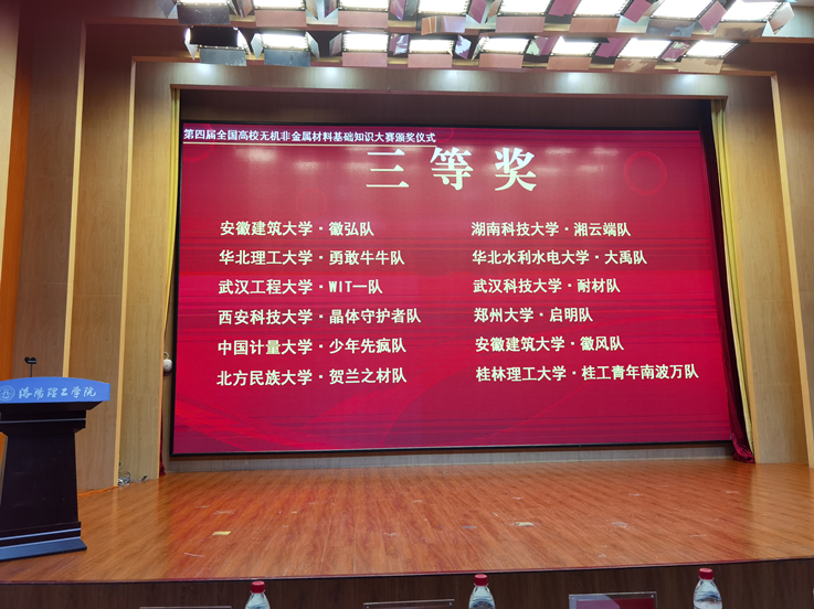 大赛期间,带队教师参加了由教育部材料类专业教学指导委员会主办、洛阳理工学院承办的全国无机非金属材料工程专业课程教学研讨会,对提高我校无机非金属材料工程专业的办学质量,促进无机非金属材料专业学科建设具有重要意义。(文/图:杨军、李萍;审核:万德军)
