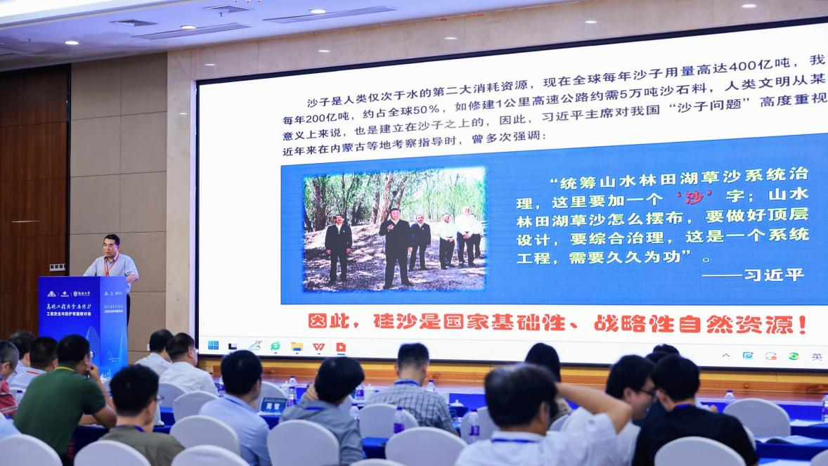 会议围绕岛礁工程安全与防护领域开展了热烈讨论,中国工程院欧进萍院士、王明洋院士等应邀参会并做了大会报告。蔡国军教授作了题为“荒漠沙资源开发与综合利用研究”的学术报告,在大会引起强烈反响。