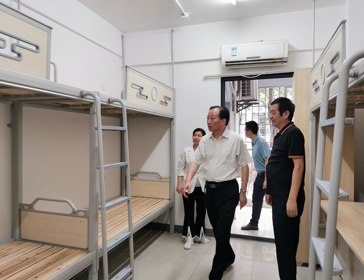 在11#、14#学生公寓,蔡新立逐层查看维修改造及公寓床安装情况,亲自测试卫生间下水是否畅通,柜门开关是否顺滑,床体是否牢固,要求发现问题立行立改、即知即改,并对工程收尾和保洁工作提出具体要求。随后,蔡新立赴现场查看新建自行车停车场、校医院新办公场所建设和配电设备迁移情况,了解项目实施和推进过程中的难点,并就相关问题提出指导意见。