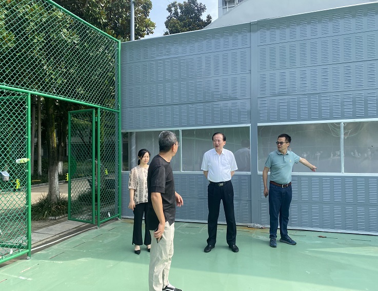 在北校区图书馆、新建篮球场项目现场,蔡新立对图书馆功能提升改造及新建篮球场项目的完成情况进行了全面了解,并提出了具体指导意见。