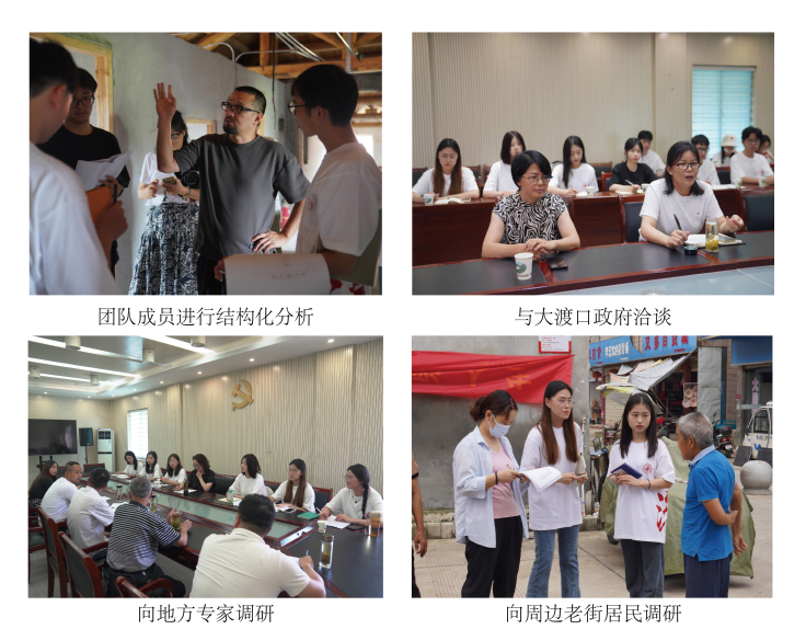 实践团队于2023年5月至7月期间多次赴池州市东至县大渡口镇红楼开展前期调研,对当地风土人情、历史文化、建筑风格等进行全面深入了解,为后续实践设计打下坚实基础,并于2023年暑期正式开展“渡口寻红”三下乡主题实践设计活动,走访调研安徽省池州市东至县大渡口镇、南溪古镇、东流古镇等地。