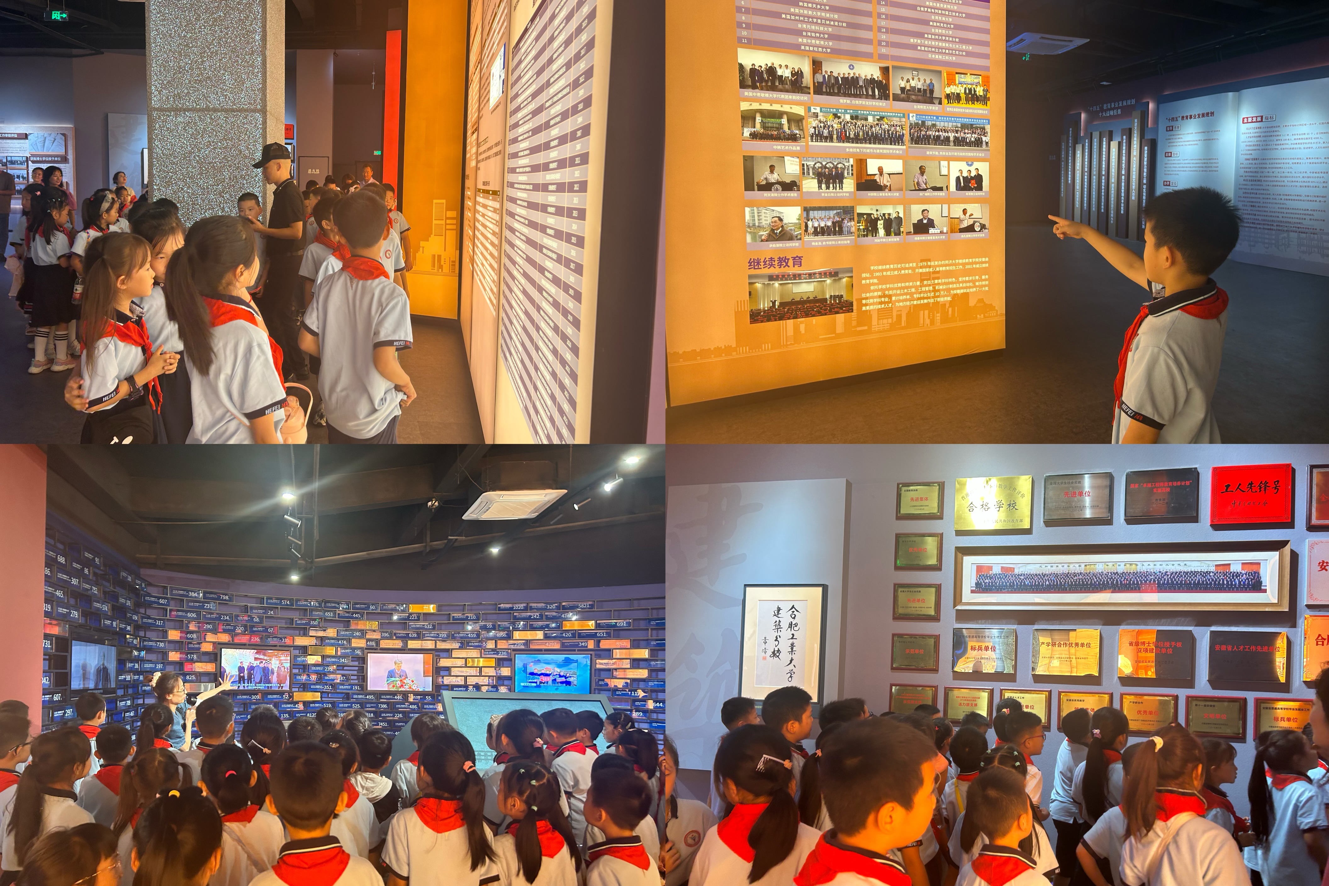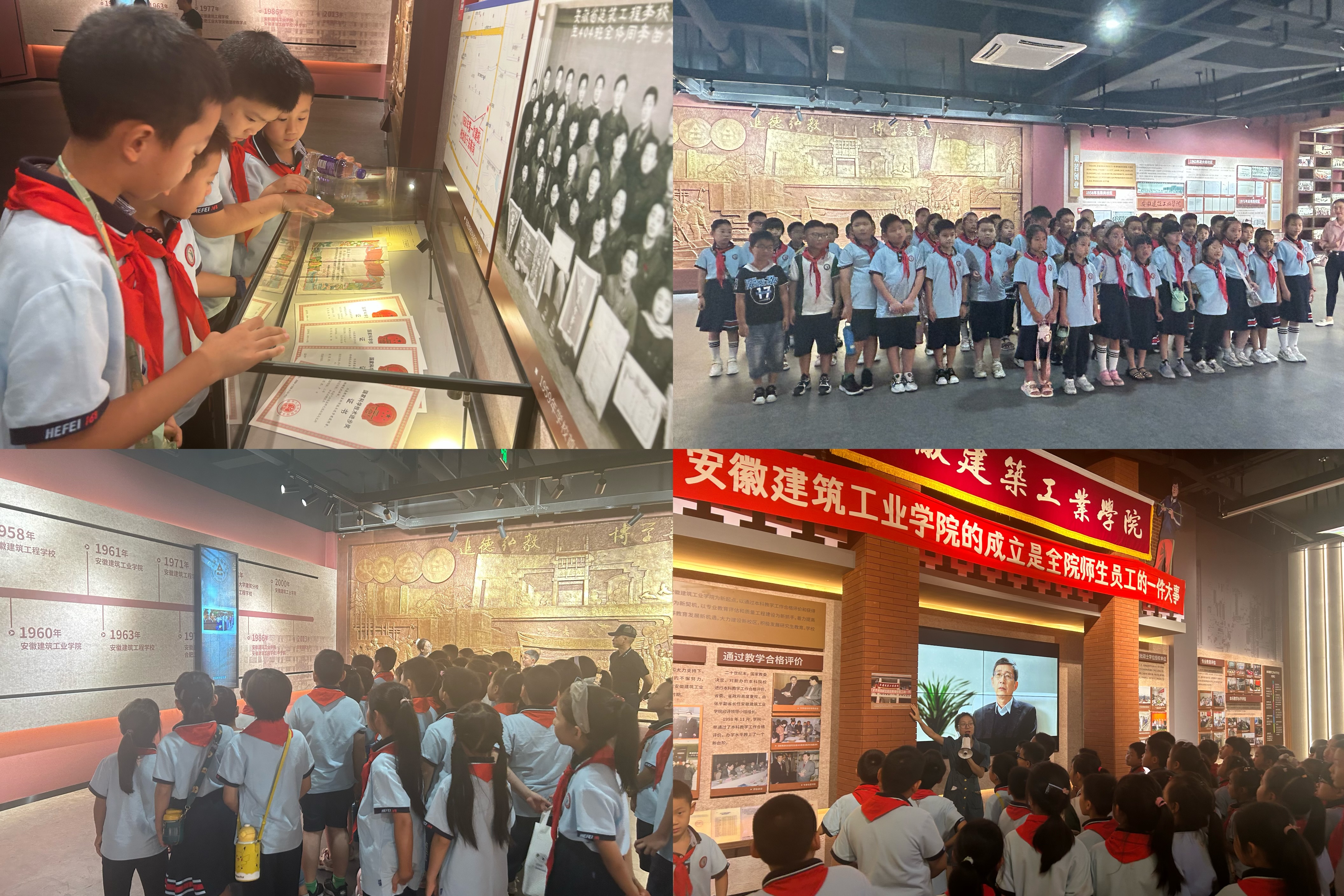 同学们第一站来到了校史馆,对于展馆的内容展现出了浓厚的兴趣,刚到达时就迫不及待地进行拍照留念。在参观的过程中,他们认真聆听学校建校65年来的风雨历程,还时不时地与讲解员展开互动,讲解员也耐心地解答了他们的疑惑。同学们对安建大的喜爱之情溢于言表,在幼小的心灵中深深埋下了好奇的种子。