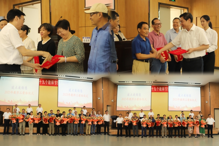 校党委书记孙道胜,校党委副书记、校长黄显怀为荣休教师颁发荣休证书和纪念品,青年教师代表为各位荣休教职工献上节日的鲜花,表达真挚的祝福。