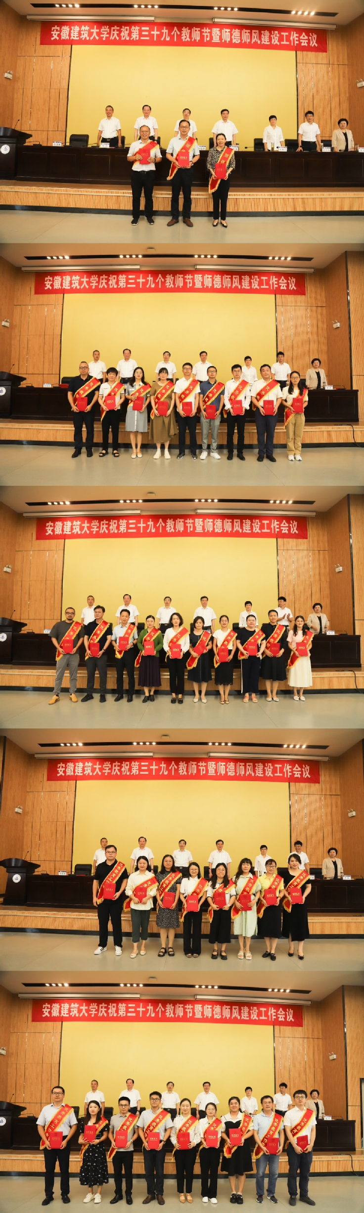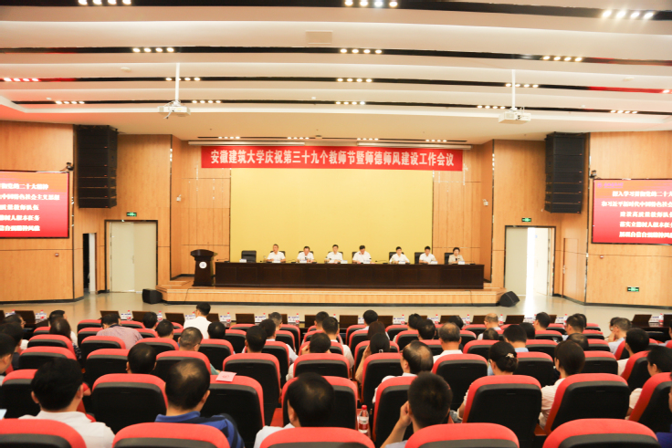 孙道胜指出,希望全校教师要坚持与党同心,培养过硬政治素质;要筑牢师德之基,切实提高育人水平;要坚持踔厉奋发,不断提高教学科研水平。广大教师要树立“躬耕教坛、强国有我”的志向和抱负,坚守三尺讲台,潜心教书育人,培养更多堪当民族复兴重任的时代新人。各单位要想人才之所想、想人才之将想、想人才之未想,为广大教师工作、学习和生活创造良好的环境条件,大力营造尊师重教的浓厚氛围。要以此次教师节庆祝大会为契机,继承光荣传统,深化改革创新,为建设国内一流、特色鲜明的高水平建筑大学作出新的更大贡献,奋力谱写学校高质量发展新篇章!(文/图:朱媛君 蒋芮;审稿:潘和平)