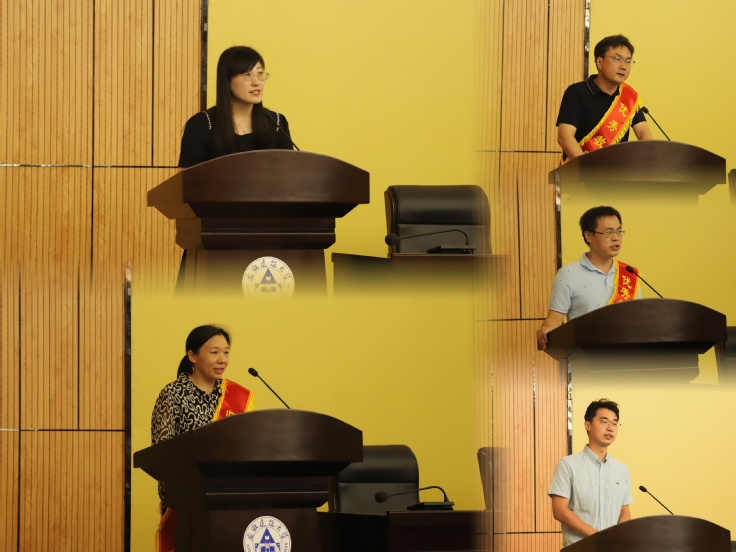 公管学院马晓艳老师、环能学院张瑾老师、艺术学院黄成老师、档案馆汪伟老师、土木学院洪秋阳老师分别代表安徽省最美教师荣誉获得者、师德标兵、优秀教师、优秀教育工作者和新进教师进行交流发言。