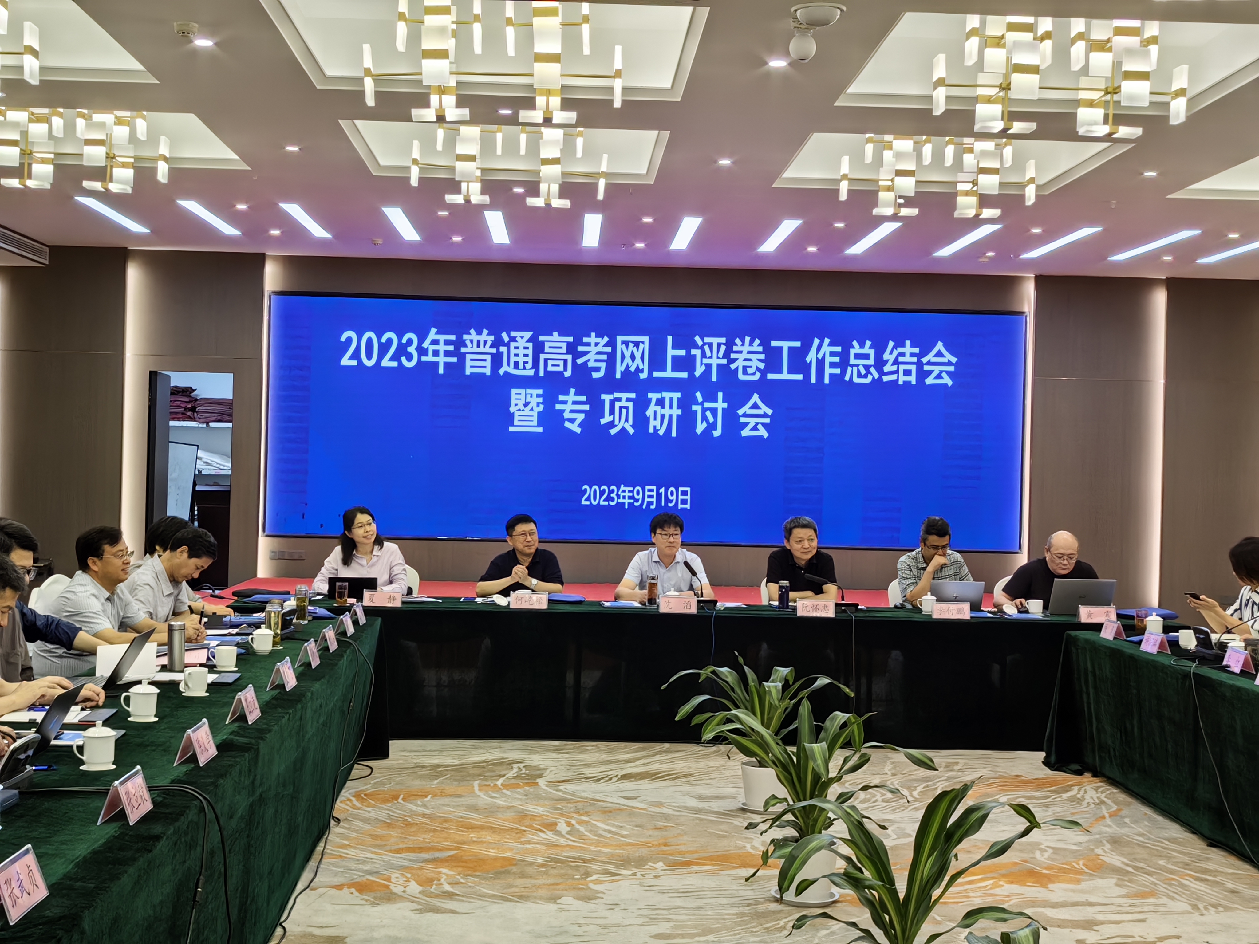 本网讯 9月19日,校党委常委、副校长闵杰带队参加安徽省2023年普通高考网上评卷工作总结会暨专项研讨会。会议由安徽省教育招生考试院院长沈滔主持,省考试院领导、相关处室负责人、承担我省高考网评工作的四所高校分管校领导及学科评卷组、网评办负责人参会。