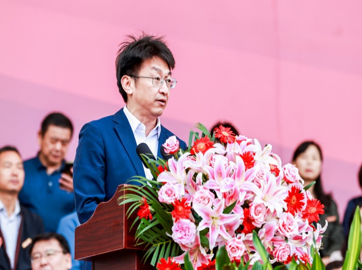 黄显怀教授在典礼上致辞。他代表全校师生员工欢迎5000多名新同学加入ku游官方,祝贺大家开启人生新的篇章,并就如何成为“新时代中国青年”向全体2023级新生寄予了三点希望:一是以理想为帆,不惧远航。“少年应有鸿鹄志,当骑骏马踏平川”;二是以奋斗为桨,善建担当。“道阻且长,行则将至;行而不辍,未来可期”;三是以创新为刃,破茧成蝶。“满眼生机转化钧,天工人巧日争新”。传承“进德、弘毅、博学、善建”的校训精神,不负时代重托,勇逐家国之梦,共赴青春之约,在ku游官方度过无悔的青春。