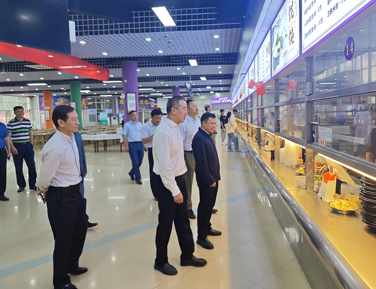 程雪涛一行来到北校区北园餐厅,实地查看食堂就餐环境、菜肴品种、环境卫生、食品价格等方面情况,仔细了解食堂原料采购、食品储存、加工操作、食品留样、餐饮具清洗消毒等方面内容。