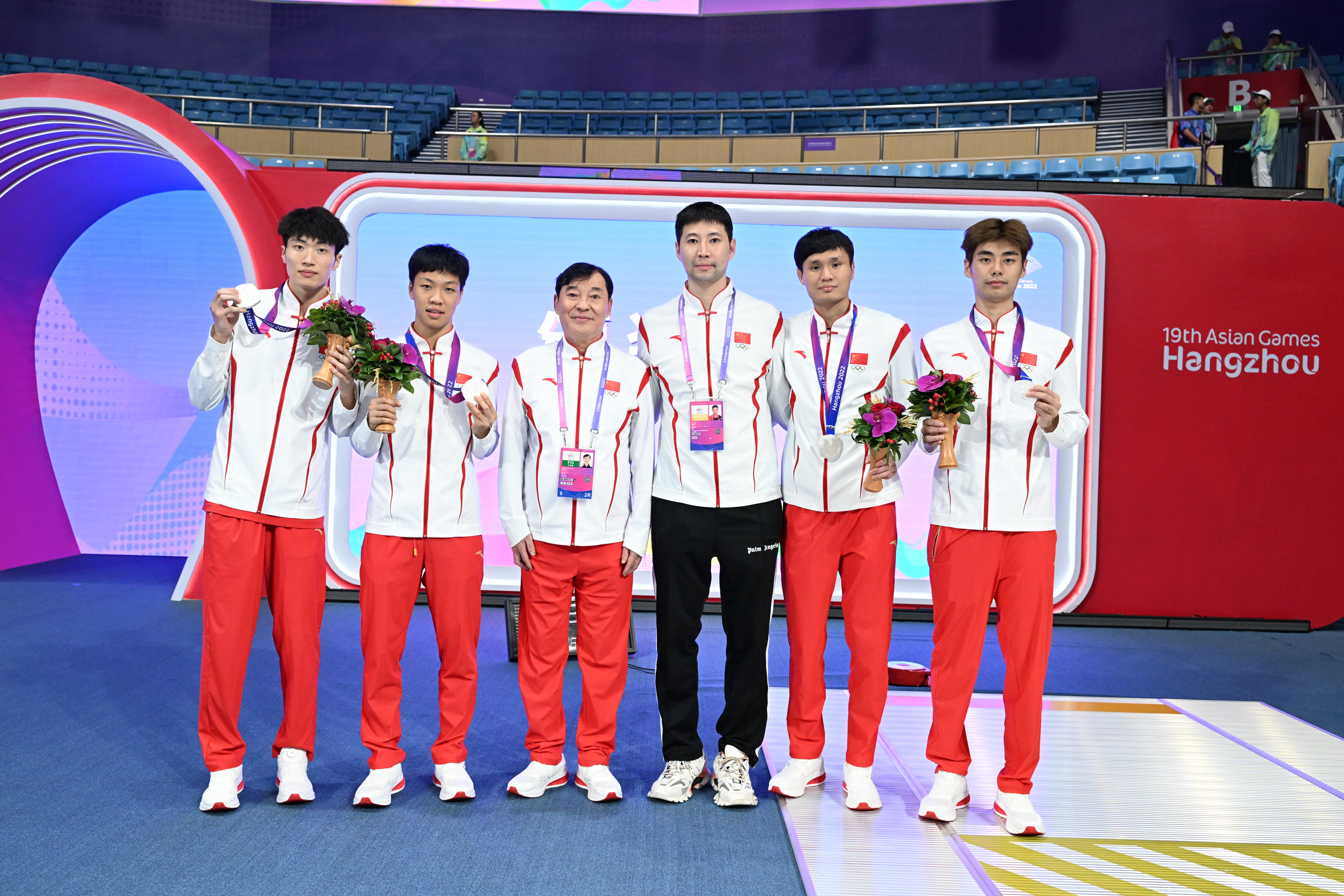 男子花剑团体经过数轮激烈的淘汰赛,中国队力压群雄,脱颖而出。在男子花剑团体半决赛中,中国队四名剑客迎战日本队,在开局阶段中国队落后的情况下,吴斌以13-3上演大逆转,彻底打乱了日本队的节奏,在之后的比赛中,陈海威不负众望,顶住压力,在最后时刻挽救赛点,以45-44绝杀日本队,使中国队成功晋级决赛;在男子团体花剑金牌战中,中国队开局一路领先,高歌挺进,始终保持着对韩国队的压制态势,但在韩国队步步紧逼、咬住比分的情况下,中国队不慎发挥失利,最终惜败于韩国队,摘得男子花剑团体银牌。
