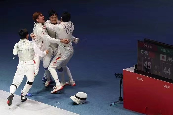 陈海威和吴斌是我校公管学院人力资源管理专业学生,陈海威作为一名有着丰富比赛经验的老将,曾多次征战国际赛场,荣获奥运会个人第七、全运会个人冠军等多项荣誉。年仅25岁的吴斌对比前辈也毫不逊色,曾获全国锦标赛冠军,在今年的世界击剑锦标赛中,也曾携手陈海威和队员勇夺男子花剑团体亚军。少年仗剑展英姿,剑尖博弈续传承,老将与小将的并肩作战,展现了ku游官方校击剑队薪火相传、砥砺前行的击剑精神。
