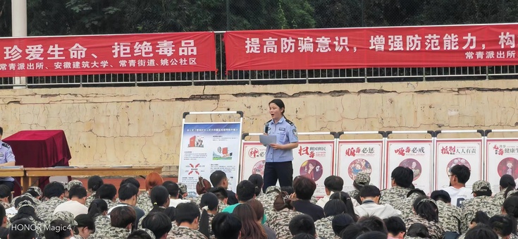 9月26日和27日,保卫处分别邀请北校区常青派出所,南校区锦绣派出所为两个校区的学生开展安全知识讲座,活动中,派出所民警为学生们认真细致地讲解防范网络电信诈骗、禁毒、反恐反暴力、防艾等方面的知识,通过详实的案例分析、深入的思想剖析、专业的数据解读,提高学生防范电信诈骗、拒绝毒品等方面保护自我的能力。讲座结束后,晚上分别在南北校区操场播放防电信诈骗电影。