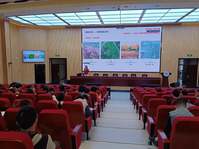 本网讯 近日,由校党委宣传部主办,建规学院承办的第105期“易海大讲堂”在南校区实训综合楼二楼报告厅举行。全国风景园林专业学位教育指导委员会委员、华中科技大学景观学系主任戴菲教授做客“易海大讲堂”,为我校师生带来了一场以《美丽中国:从大地生态到国土景观》为主题的精彩报告。会议由建规学院副院长顾康康教授主持,建规学院部分教师、研究生及本科生近150人参加了报告会。