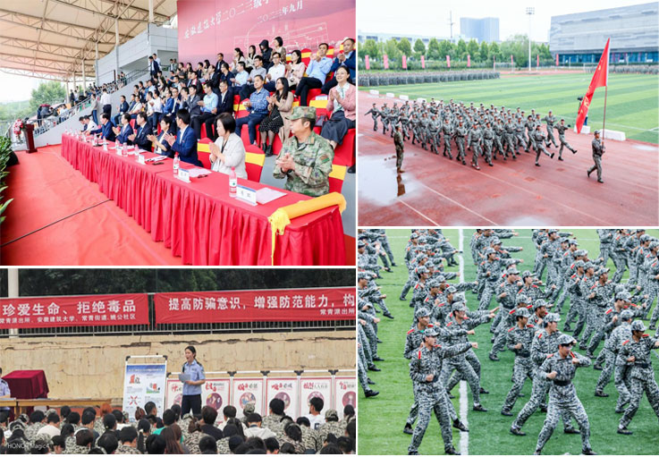 以生为本守初心,立德树人开新局。为引导新生明确成才方向,为时代发展积蓄青春的力量,学校紧紧围绕立德树人的根本任务,坚持德智体美劳五育并举,全面发展和个性发展并重,实现协同教育浇花浇根、育人育心目的。学校为新生发放《习近平与大学生朋友们》《红色江淮光辉记忆——安徽红色建筑印迹》两本书籍,勉励广大学子珍惜青春韶华,努力奋发有为,争做时代的先锋者。校领导情系学生,深入教学一线听课,帮助学生坚定理想信念,强化自我认知,更好规划大学学习生活,上好新生“开学第一课”。各学院纷纷召开家长会、专业导师见面会,组织开展心理团辅、主题班会、实践活动等,耐心答疑解惑,激发专业理想,增进同学感情,用心描绘学生成长蓝图。按照抓在日常,严在经常的要求,继续推进新生“早晚工程”,落实健康跑和晚自习,组织宿舍文明大检查,把规范管理的严格要求和润物无声的教育方式充分结合,引导广大学生爱劳动、讲文明、重品行、树新风,培养良好的行为习惯。为丰富新生校园生活,为广大新生提供展示自我的舞台,学校精心组织各类中秋、国庆等节日文化体验活动,举办“军歌嘹亮 唱响校园”军歌大赛、迎新晚会等,用满满仪式感凝心聚魂,增强新生的归属感、获得感、幸福感。宿舍是了解新生、关怀新生的一线,也是发现问题、解决问题的重要阵地,各学院辅导员深入新生宿舍,和学生亲切交流,解决学生急难愁盼的问题,减少学生的距离感和孤独感。通过教育下沉,推进入学教育全面开花、思政引领更深更远,促进广大新生在“扎根”中转变角色,在“破土”中奋力进取,在“抽穗”中善作善成。